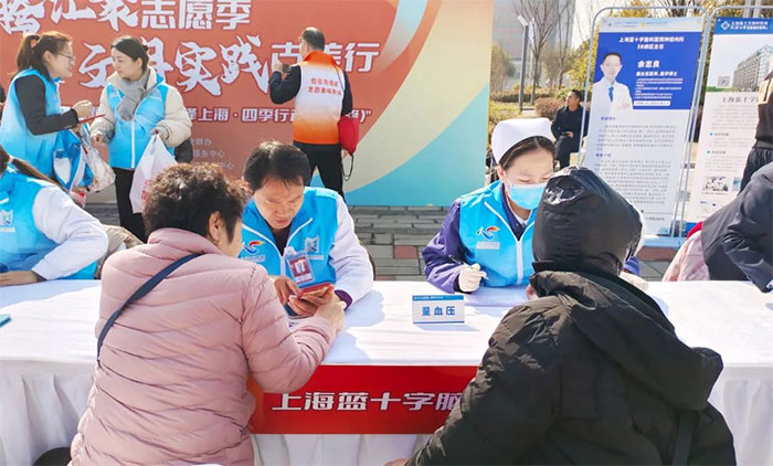 活動(dòng)當(dāng)天一大早,上海藍(lán)十字腦科醫(yī)院余志良主任一行來(lái)到活動(dòng)現(xiàn)場(chǎng),為居民提供醫(yī)療健康咨詢及血壓測(cè)量等服務(wù)。
