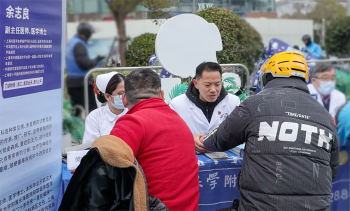 活動當天,由消化內科主任高澤立、5B病區(qū)主任余志良和7B病區(qū)護士吳延梅等組成的藍十字志愿服務隊早早來到活動現(xiàn)場,為廣大群眾提供醫(yī)療健康咨詢及血壓測量等服務。