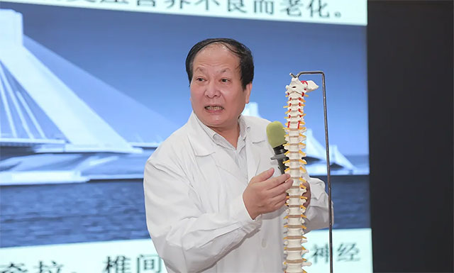 脊椎病是現(xiàn)代人的常見(jiàn)病。頸腰痛是發(fā)病率僅次于感冒的疾病,腰痛是成年人群中引起勞動(dòng)力喪失最常見(jiàn)的原因,頸痛排第四位。上海中醫(yī)藥大學(xué)何金森教授就《頸腰椎退變的防治》進(jìn)行了專題講座。