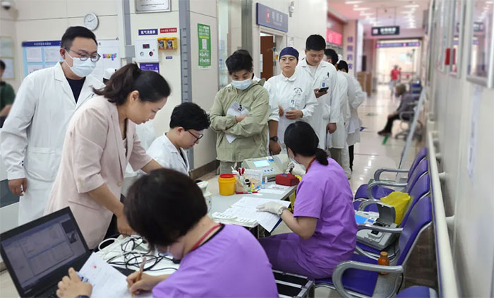 早上9點(diǎn)不到,從臨床一線的醫(yī)生、護(hù)士,到行政后勤人員,大家已早早地來(lái)到獻(xiàn)血集合點(diǎn),個(gè)個(gè)精神飽滿、熱情高漲。