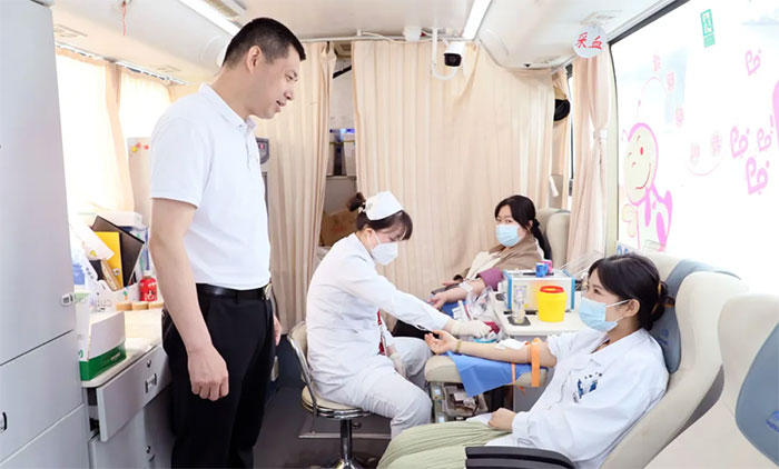 ▲ 朱敏書(shū)記帶頭無(wú)償獻(xiàn)血