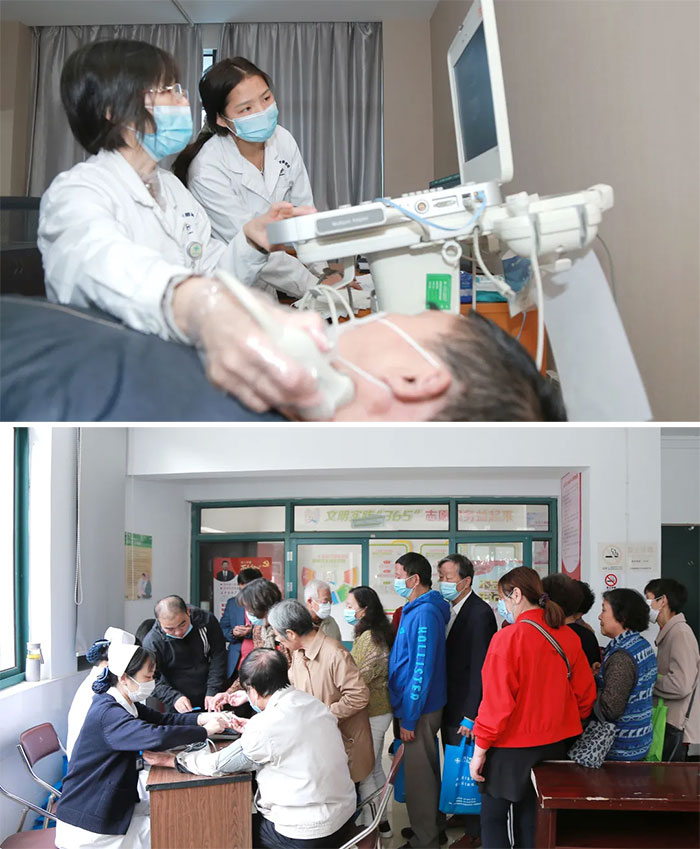 ▲ 頸動(dòng)脈彩超檢查、血壓及血糖測量等