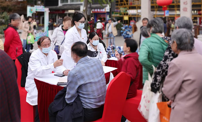 活動當(dāng)天,七寶鐘樓廣場人頭攢動,前來咨詢的群眾絡(luò)繹不絕。“藍(lán)小醫(yī)”志愿服務(wù)隊(duì)發(fā)揮各自專長,耐心細(xì)致地為群眾解答各類健康疑問,提供血壓等基礎(chǔ)檢查,并根據(jù)每個人的健康狀況給予個性化的醫(yī)療指導(dǎo)。同時,針對群眾關(guān)心的秋冬高發(fā)病及慢性病防治、日常保健等問題,結(jié)合臨床實(shí)踐,給出科學(xué)防治建議。
