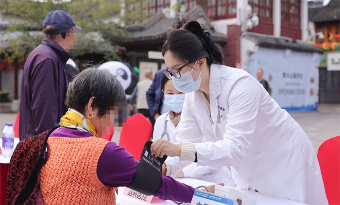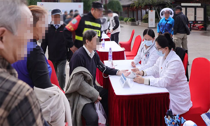 護(hù)理部宋凡可從活動開始便忙碌不止,為現(xiàn)場的群眾和游客提供血壓測量服務(wù)。她嫻熟的操作和貼心的服務(wù)成為了現(xiàn)場又一道溫暖而專業(yè)的風(fēng)景線。