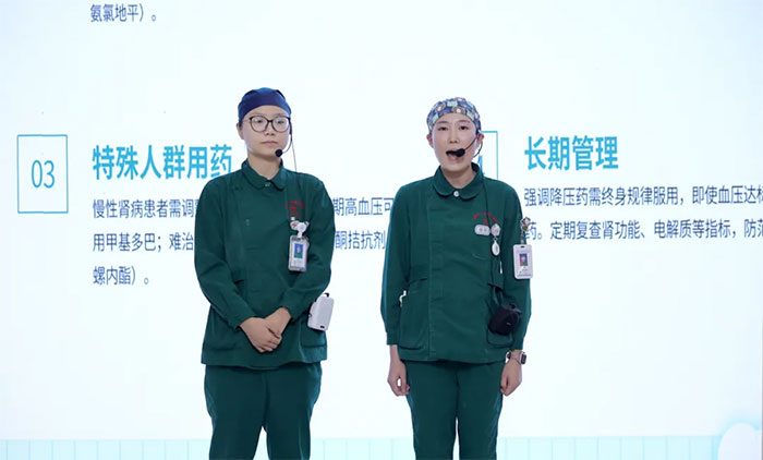 活動(dòng)中,護(hù)士長(zhǎng)陳婷婷以沉穩(wěn)專業(yè)的風(fēng)格串聯(lián)全場(chǎng),引導(dǎo)話題層層深入。護(hù)士胡珂和葉佳意則創(chuàng)新采用對(duì)話問答的形式,將復(fù)雜的醫(yī)學(xué)知識(shí)變得通俗易懂,為患者和家屬生動(dòng)講解了卒中的定義、風(fēng)險(xiǎn)因素、科學(xué)飲食及運(yùn)動(dòng)方案等相關(guān)知識(shí),闡釋了血管健康是預(yù)防卒中的核心,詳細(xì)介紹科學(xué)的飲食方案與運(yùn)動(dòng)建議,明晰吸煙、飲酒對(duì)血管及血壓的巨大危害,更強(qiáng)調(diào)了通過科學(xué)綜合管理,打好“定期體檢、遵醫(yī)囑用藥、健康生活方式”這一套“卒中防御組合拳”的重要性。