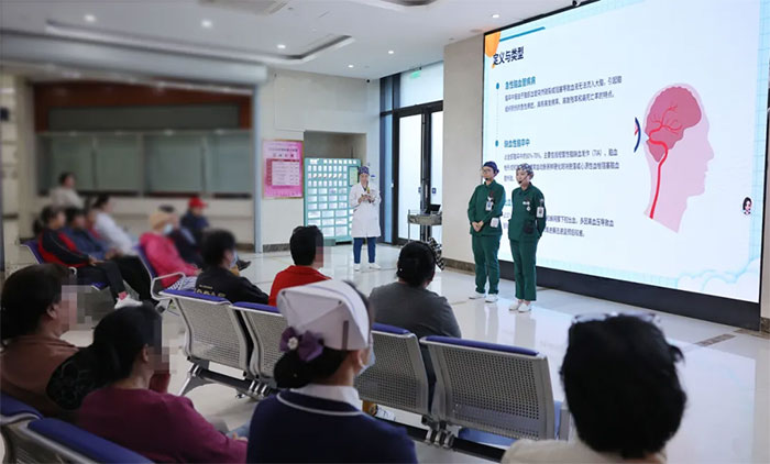 11月20日下午,“護(hù)理科普大講堂”第六講如約而至。本期聚焦“不等‘中風(fēng)’來 預(yù)防腦卒中”這一關(guān)鍵主題,由醫(yī)院8B腦血管病四科護(hù)士長(zhǎng)陳婷婷與護(hù)士胡珂、葉佳意聯(lián)袂主講,為現(xiàn)場(chǎng)眾多患者及家屬帶來了一場(chǎng)生動(dòng)實(shí)用的健康盛宴。
