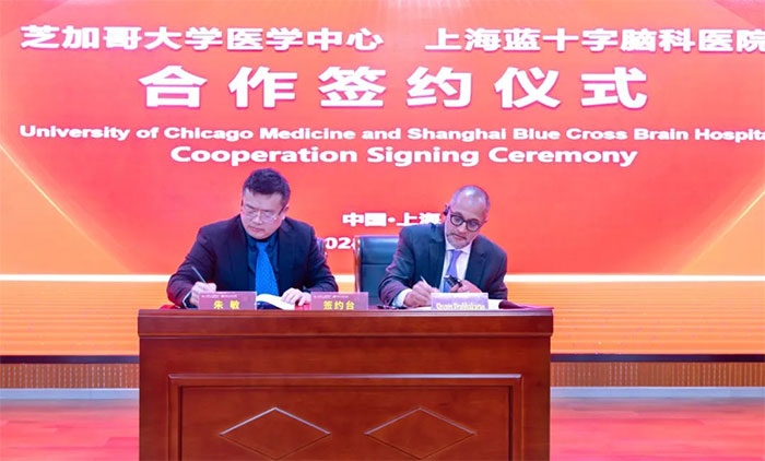 龍年新歲,開新局、邁新步、謀新篇!1月25日上午,芝加哥大學(xué)醫(yī)學(xué)中心(下稱UCM)—上海藍十字腦科醫(yī)院(下稱藍十字)第五屆神經(jīng)醫(yī)學(xué)國際高峰論壇暨合作簽約儀式順利舉行。線下相聚,期盼成真,國內(nèi)外神經(jīng)醫(yī)學(xué)專家齊聚一堂,交流探討,啟迪新思。會議開啟同步直播,2600余人在線觀看。