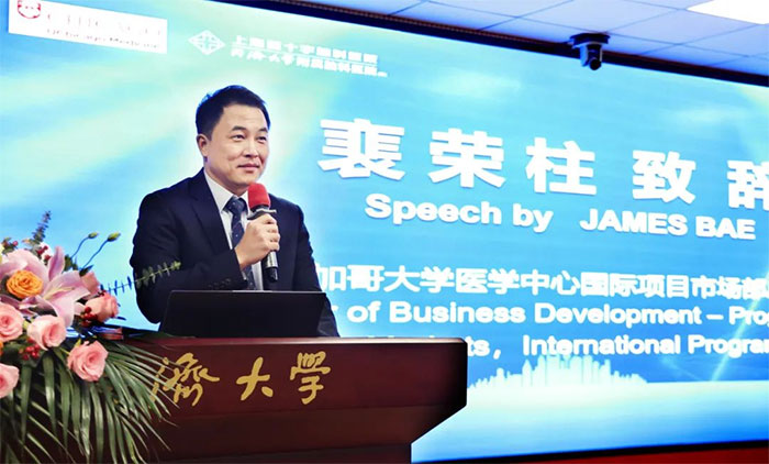 項耀鈞院長致開幕詞,對與會嘉賓表示熱烈歡迎。項院長強調(diào)了專注腦健康、研究腦科學(xué)的必要性和重要性。他表示,芝加哥大學(xué)和同濟大學(xué)作為有著百年歷史的知名院校,在神經(jīng)醫(yī)學(xué)方面擁有領(lǐng)先的技術(shù)及研究,同樣藍十字雖然年輕,但志存高遠,致力于創(chuàng)建現(xiàn)代化、國際化、專業(yè)化的腦病?。他說,共同的愿景、目標、價值觀及信念促成了五年前的合作,期間,步履不停,彼此加深了了解、加強了信任、增進了友誼。本次交流及簽約,雙方開啟了深入務(wù)實的新一輪合作,相信一定會結(jié)出更豐碩的果實,為廣大患者帶來更多福音。最后,項耀鈞院長預(yù)祝大會圓滿成功。