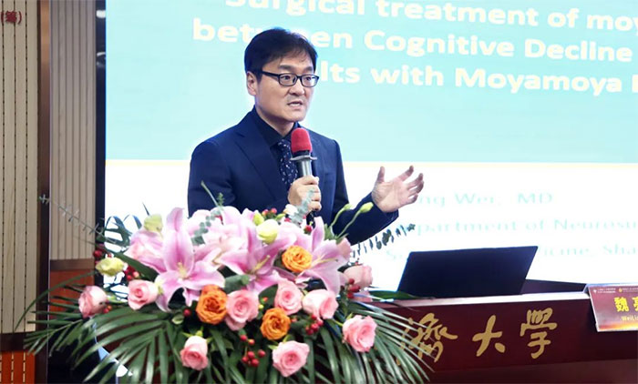 東方醫(yī)院魏亮教授分享了《成人煙霧病手術(shù)治療方法及術(shù)后認知功能減退的腦血流動力學(xué)研究》。他從前期的手術(shù)到后期的術(shù)后評估,分析了患者術(shù)后認知功能減退的可能原因和機制,分享了對腦血流動力學(xué)改變的研究。