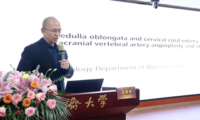 藍十字王貴平博士以《椎動脈顱內(nèi)段血管成形及支架植入術(shù)后延髓頸髓水腫》為題,分享了一例典型案例。他對患者病史、診療策略、臨床效果隨訪等進行詳盡展示,尋根究底,舉一反三,總結(jié)經(jīng)驗教訓(xùn),分享了五點臨床思辨。