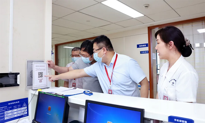 醫(yī)院總經(jīng)理兼書記朱敏、副院長周克祥及相關(guān)職能科室負(fù)責(zé)人等陪同調(diào)研交流。