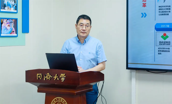 ▲ 潘耀良副院長介紹醫(yī)院及護(hù)理工作情況