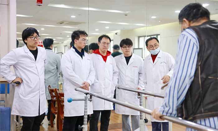 在醫(yī)院1200平方米的多功能康復(fù)大廳,部分患者正在治療師的指導(dǎo)下進(jìn)行康復(fù)訓(xùn)練。沈志祥博士向?qū)W生們介紹,醫(yī)院以神經(jīng)專科為特色,神經(jīng)康復(fù)主要圍繞神經(jīng)系統(tǒng)疾病或損傷導(dǎo)致的功能障礙,通過綜合、規(guī)范、個(gè)體化的康復(fù)手段,促進(jìn)神經(jīng)功能重塑,改善運(yùn)動(dòng)、感覺、認(rèn)知、言語、吞咽及日常生活能力,幫助患者最大程度恢復(fù)社會(huì)參與能力。他強(qiáng)調(diào),神經(jīng)康復(fù)不是輔助治療,而是神經(jīng)系統(tǒng)疾病整體治療中不可或缺的重要部分。