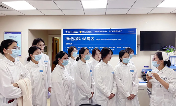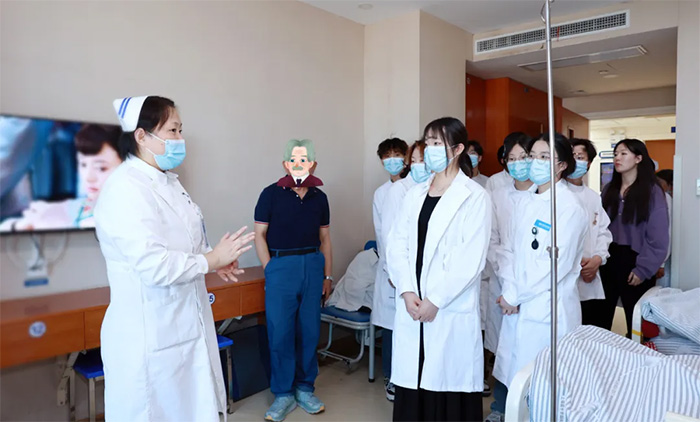 此外,在醫(yī)療管理部副總監(jiān)楊麗萍及醫(yī)院護理部干事何瓊瓊的帶領(lǐng)下,邦德師生兵分兩組,深入醫(yī)院手術(shù)室、神經(jīng)內(nèi)科8A病區(qū)、7A病區(qū)、4A病區(qū)、康復(fù)科、門急診、高壓氧科、DSA介入手術(shù)室等特色科室實地參觀。在各科護士長/主任及業(yè)務(wù)骨干等的接待下、講解中,邦德師生走進病房、走近患者,直觀感受分級護理、專科護理的高標(biāo)準、嚴要求及移動護理的便捷,仔細了解醫(yī)院優(yōu)質(zhì)服務(wù)的內(nèi)涵及精良設(shè)施設(shè)備應(yīng)用等。