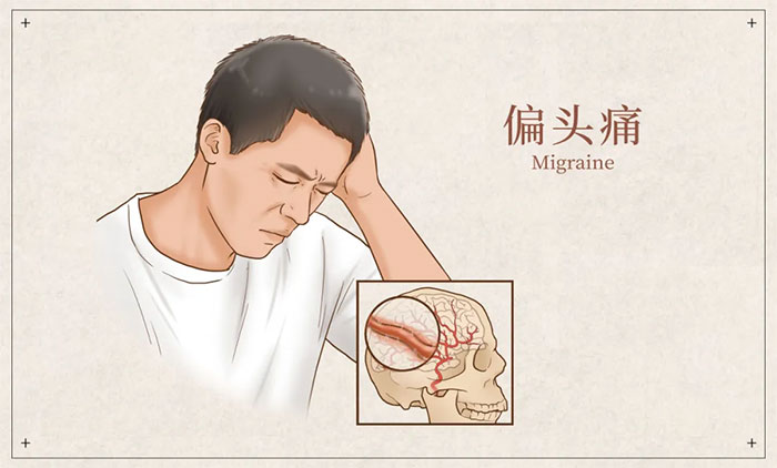 其癥狀特點為反復(fù)發(fā)作性多為單側(cè)、中重度搏動性頭痛,通常持續(xù)4~72小時,常同時伴惡心、嘔吐、畏光和畏聲等癥狀,長期反復(fù)發(fā)作導(dǎo)致嚴(yán)重的健康損失、生活質(zhì)量下降和生產(chǎn)力的損耗。同時,偏頭痛通常還伴隨多種并發(fā)癥,如焦慮、抑郁、腦血管病、睡眠障礙等,造成極大疾病負(fù)擔(dān)。