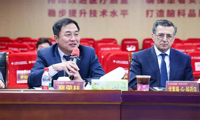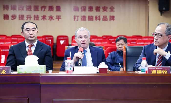 項(xiàng)耀鈞院長介紹了醫(yī)院發(fā)展概況與學(xué)科建設(shè)成果。他表示,醫(yī)院始終堅(jiān)持“323”學(xué)科建設(shè)戰(zhàn)略,重點(diǎn)發(fā)展腦血管病、神經(jīng)外科、神經(jīng)重癥、神經(jīng)康復(fù)等學(xué)科,以科技創(chuàng)新為驅(qū)動(dòng),持續(xù)引入并應(yīng)用如AI技術(shù)輔助臨床診斷評估、腦機(jī)接口等前沿技術(shù),積極推動(dòng)醫(yī)教研協(xié)同發(fā)展,努力打造具有國際水準(zhǔn)的腦科醫(yī)院。