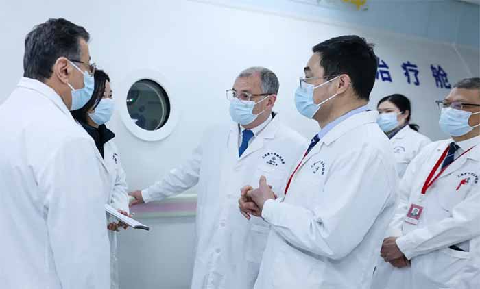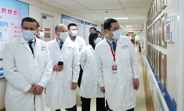 在8A和7A病區(qū),F(xiàn)ernando Goldenberg博士就危重癥與疑難病例的治療策略,與科室主任張慶成、張靜波進(jìn)行了交流,并對團(tuán)隊(duì)在精細(xì)化管理和多學(xué)科協(xié)作等方面的做法給予積極評價(jià)。