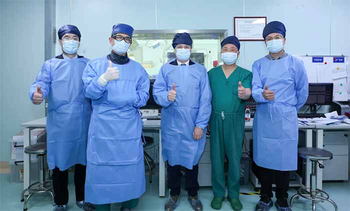 在9樓手術(shù)室,Youssef G. Comair博士在周克祥副院長的陪同下,觀摩了盧云鶴博士主刀的神經(jīng)內(nèi)鏡下第三腦室造瘺及透明隔造瘺、顱骨修補(bǔ)、Ommaya泵植入術(shù)。雙方圍繞腦外傷診療的中美差異展開交流。盧云鶴博士介紹了神經(jīng)內(nèi)鏡技術(shù)的臨床應(yīng)用優(yōu)勢,Youssef G. Comair博士對手術(shù)團(tuán)隊(duì)的規(guī)范操作與設(shè)備配置表示認(rèn)可。