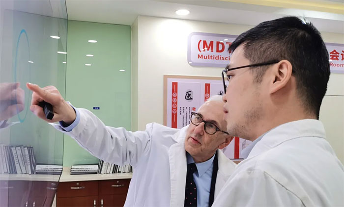 ▲ Peter Warnke教授與神經(jīng)外科團隊進行病例討論