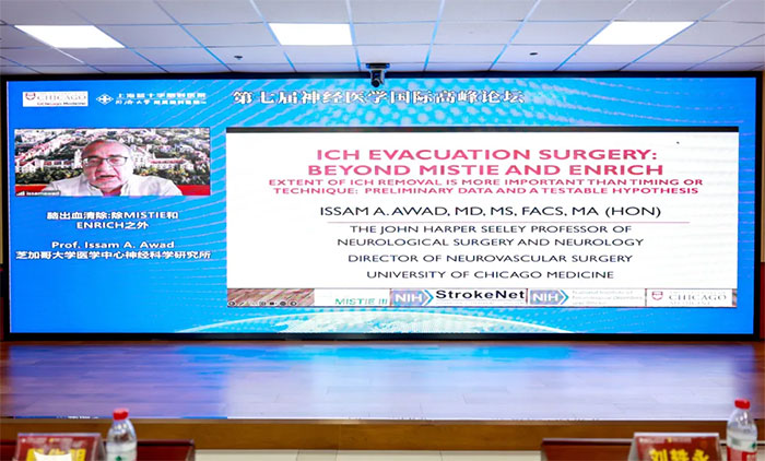 UCM Issam A.Awad教授帶來(lái)題為“Intracerebral Hemorrhage Evacuation: beyond MISTIE and ENRICH” 的學(xué)術(shù)報(bào)告。他首先對(duì)腦出血進(jìn)行概述,然后結(jié)合MISTIE、STICH、ENRICH等國(guó)際經(jīng)典研究及多中心隨機(jī)試驗(yàn)的新進(jìn)展及自己20多年的研究所得,探討分析腦出血清除的不同治療方法、治療時(shí)間窗等的生存獲益、功能獲益及臨床獲益,為大家?guī)?lái)國(guó)際前沿的信息和知識(shí)。
