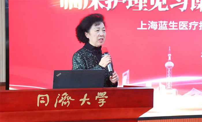 藍(lán)生腦科葉文琴副總裁為本次比賽致辭。她表示,臨床見習(xí)課是加強(qiáng)理論知識學(xué)習(xí)吸收的重要環(huán)節(jié),也是打造高品質(zhì)教學(xué)醫(yī)院的重要模式。近年來,腦科和天佑兩家醫(yī)院有幸得到了諸多高等院校的厚愛,得到了同濟(jì)和六院兩所大型教學(xué)醫(yī)院的幫扶,建立了較為標(biāo)準(zhǔn)規(guī)范的課程體系、完整的護(hù)理教學(xué)管理體系及具有一定素質(zhì)、一定基礎(chǔ)、一定能力的師資隊伍,我們珍而重之。同時,她指出,當(dāng)前,臨床教學(xué)工作雖取得一些成績,但仍存在不足,希望本次比賽能以點帶面樹標(biāo)桿,通過以賽促教的形式切實提升教學(xué)質(zhì)量內(nèi)涵和師資隊伍實力水平,為扎實推進(jìn)同濟(jì)大學(xué)附屬醫(yī)院脫籌奠定基礎(chǔ)。葉文琴副總裁對與會評委、嘉賓給予藍(lán)生腦科真誠幫扶表示誠摯感謝,并預(yù)祝選手們?nèi)〉眉芽儭①惓鲲L(fēng)采。