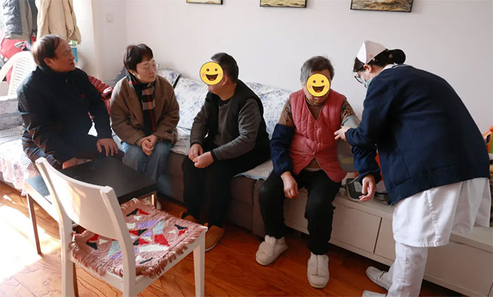 1月21日上午,在七寶鎮(zhèn)新鎮(zhèn)街區(qū)黨支部書記錢慧的陪同下,醫(yī)院黨支部組織委員胡玉堂副主任醫(yī)師攜醫(yī)護(hù)人員來到園藝新村小區(qū)馮大叔、楊阿姨家中。