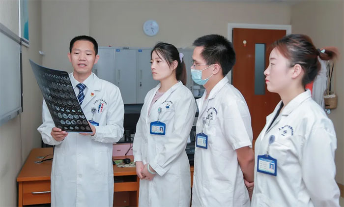 針對這一狀況,余志良博士團隊從病情和心情兩個角度入手,充分發(fā)揮神經(jīng)內(nèi)科中西醫(yī)結合治療腦卒中的優(yōu)勢,細分輕重緩急,先采用抗血小板凝集、控制“三高”、營養(yǎng)神經(jīng)等西醫(yī)對癥治療方法,同步疊加特色循經(jīng)刺血及手骨全息針灸進行救治,迅速緩解手腳麻木、胸悶氣短等不適;同時病區(qū)的醫(yī)護團隊還適時為李女士疏導心情;貞浤嵌稳兆樱钆扛锌卣f,“一下子感覺好多了。”