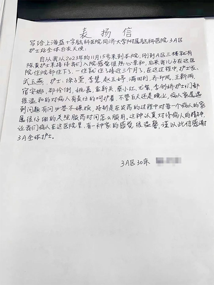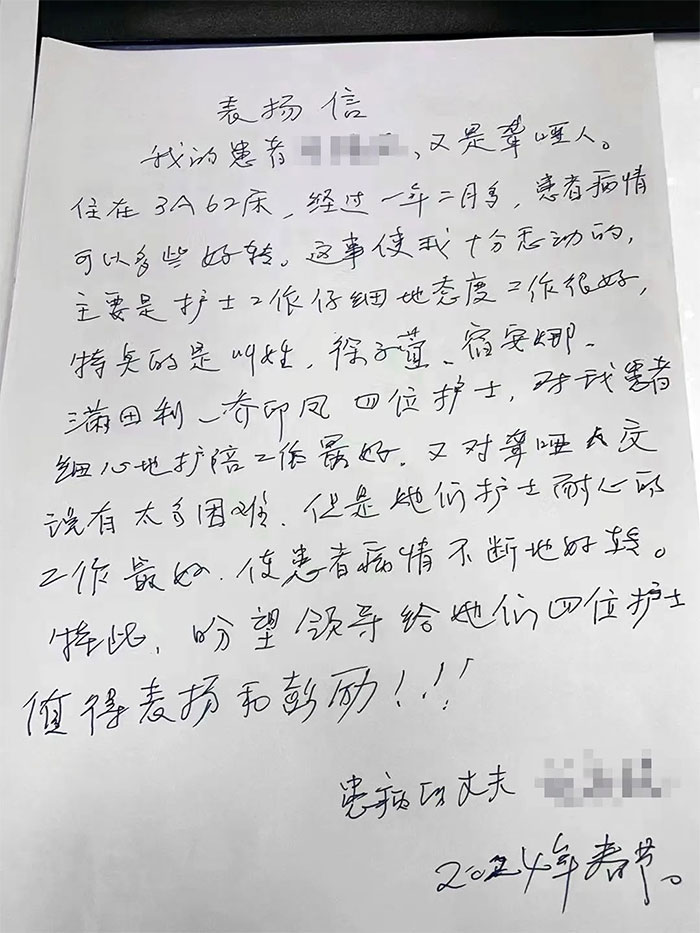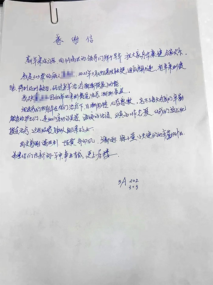 ▲ 3A病區(qū)收到8封感謝信