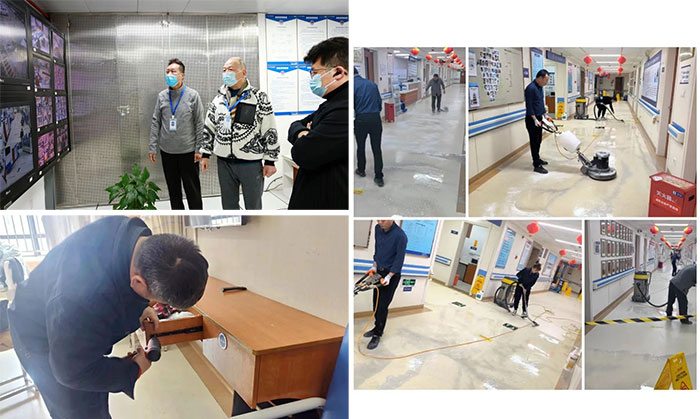 總務(wù)科副科長柯石鑾、微型消防站站長陳偉智、保安隊長吳偉松連續(xù)九天在崗,加強巡查、防范未然,確保醫(yī)院消防及安全生產(chǎn)工作無異常。維修組師傅陸洪其、王錫彬、江永彬三人輪值,對全院所有公用設(shè)施設(shè)備全面檢修,確保設(shè)備安全,更傾盡全力保障現(xiàn)場排障修復(fù)。保潔依計劃保質(zhì)保量完成全院地面的打蠟工作,常常忙至凌晨,進一步優(yōu)化了就醫(yī)環(huán)境。