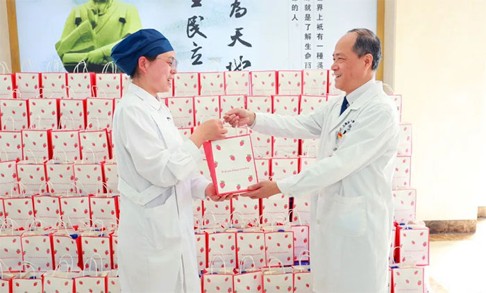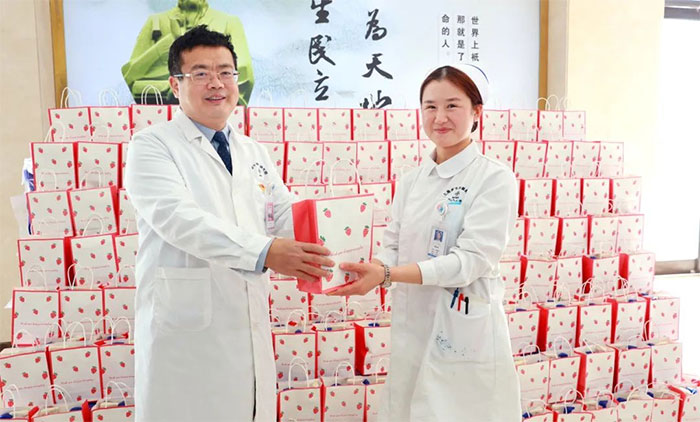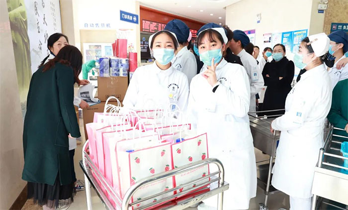女員工們收到禮物后,臉上洋溢著幸福的笑容,為醫(yī)院送上的節(jié)日關(guān)愛而倍感溫暖。她們互相分享著喜悅,傳遞著祝福。