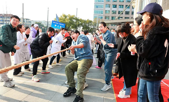 本次拔河比賽,既讓全院女同胞度過了一個快樂而充實的節(jié)日,展現(xiàn)了職工團結(jié)、奮進、健康的精神風貌,也增進了職工的凝聚力、向心力和感召力,豐富了醫(yī)院積極倡導(dǎo)職工“快樂生活、快樂工作”的精神文化內(nèi)核。新時代,新夢想,新征程,新號角,每個藍十字人將勇于秉持、恒于發(fā)揚拔河精神,以更加嶄新的奮斗姿態(tài)和更加昂揚的精神面貌投入到今后的工作和生活中,為譜寫醫(yī)院高質(zhì)量發(fā)展新篇章、打造健康中國新愿景貢獻力量。