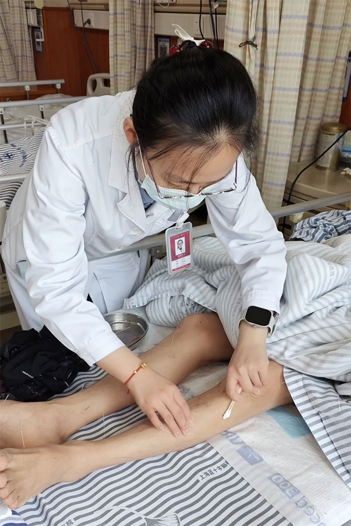 治療室、病床旁,推拿、針灸、紅外線治療......假期里,依然隨處可見中醫(yī)師忙碌的身影。趙宇蘭副主任及醫(yī)師王偉、羅思思等悉心為患者實(shí)施各種中醫(yī)治療。他們時(shí)而附身詢問患者感受,時(shí)而調(diào)整針/儀器的角度或者推拿的力度,專注的神情仿佛在雕琢一件藝術(shù)品。“看到患者眉頭舒展,說癥狀有好轉(zhuǎn),再苦再累都值了。”