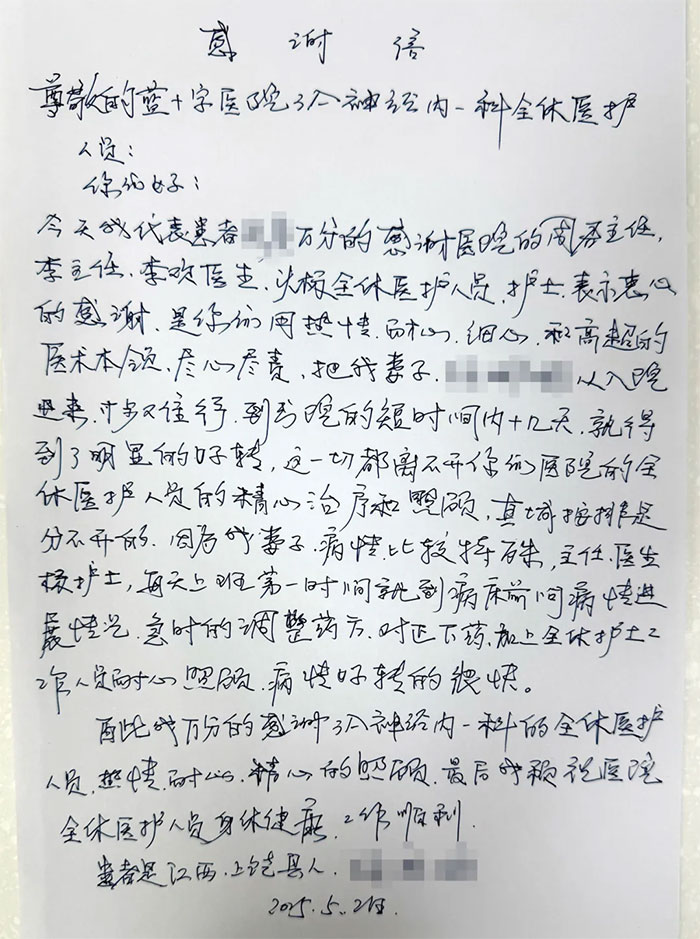 禮物,是來自患者發(fā)自肺腑的感慨:“看到他們像家人一樣照顧我,心里暖暖的。”“我也曾是一名護(hù)理工作者,在一個(gè)多月的住院時(shí)間里,看到了年輕一代護(hù)理隊(duì)伍的朝氣蓬勃,也看到了‘健康所系、性命相托’醫(yī)學(xué)生誓言的傳承。”......更是映照在患者臉龐上燦爛的笑顏,及舒心、安心和放心!