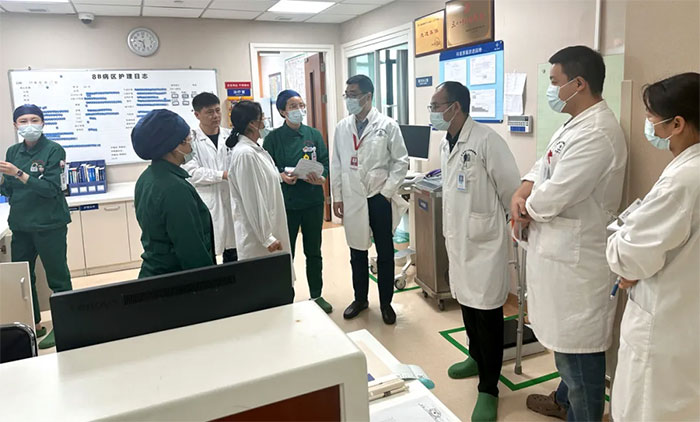 院領(lǐng)導(dǎo)班子高度重視五一假期間醫(yī)院各項(xiàng)工作的正常運(yùn)行。副院長潘耀良、周克祥,副總經(jīng)理吳春芳、吳啟航等輪班值守,深入各科室部門親切慰問,并詳細(xì)了解醫(yī)療運(yùn)行、后勤保障等各項(xiàng)工作情況,確保醫(yī)院平穩(wěn)有序運(yùn)行。