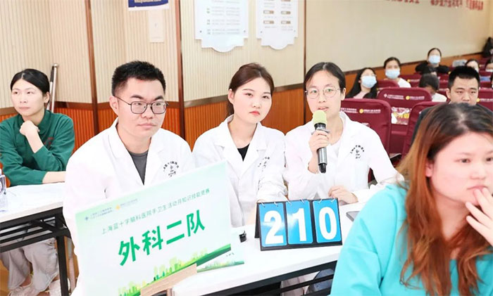 決賽以知識理論答題(必答題、搶答題及風(fēng)險題)與技能操作相結(jié)合方式進行。18名選手組成6支實力強勁的隊伍展開角逐比拼,他們分別為:外科一隊、外科二隊、監(jiān)護室隊、內(nèi)科隊、康復(fù)科隊以及特殊科室隊。