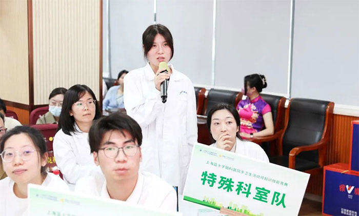 手衛(wèi)生是控制醫(yī)源性感染、減少致病微生物傳播的重要措施。為強化醫(yī)院手衛(wèi)生文化建設(shè),規(guī)范手衛(wèi)生行為,進一步提高醫(yī)務(wù)人員的手衛(wèi)生依從性和正確率,預(yù)防及控制院內(nèi)感染的發(fā)生,以今年“5.5世界手衛(wèi)生日”為契機,上海藍(lán)十字腦科醫(yī)院舉辦了以“共同加快行動,拯救生命”為主題的五月手衛(wèi)生知識技能競賽活動。