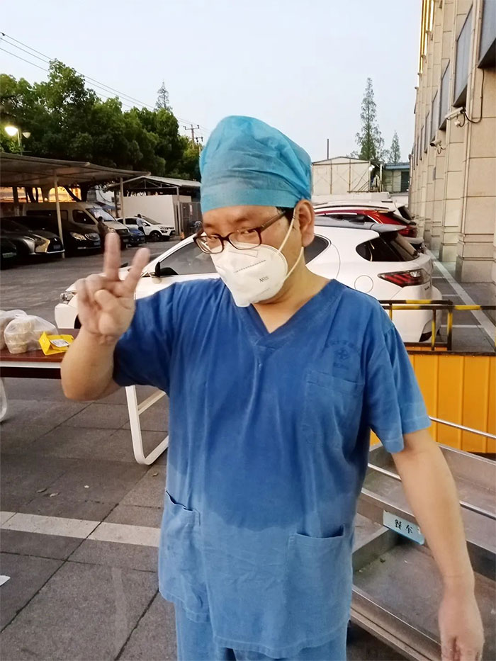 疫情前期,醫(yī)院物資緊缺,防疫物資的提供更是捉襟見肘。為了更好地保護(hù)小分隊成員,虎哥自創(chuàng)了“黃金靴”,即用黃色垃圾袋套住雙腳,以代替原來的腳套,雖然行動稍顯不便,但我們“金靴隊”無疑成了整個醫(yī)院最靚的仔,出鏡率,回頭率直接爆表!