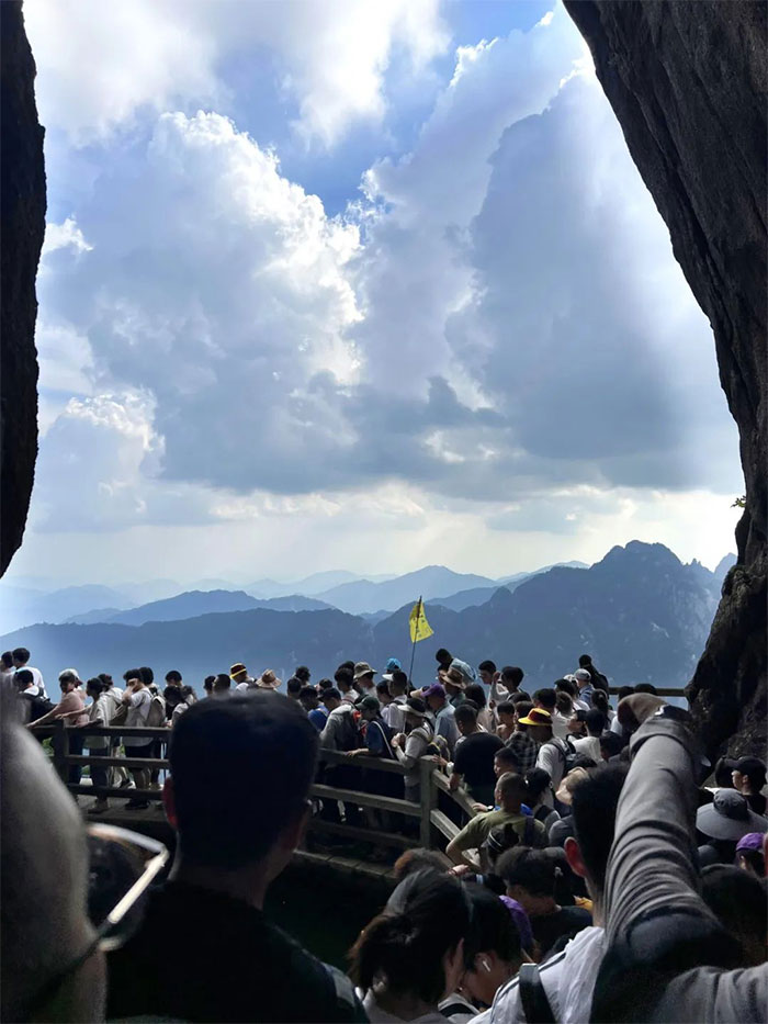 旅程的第一站,便是暢游黃山大景區(qū)。8月12日一大早,大家開始前往云谷索道登山,然后從光明頂?shù)竭_迎客松。