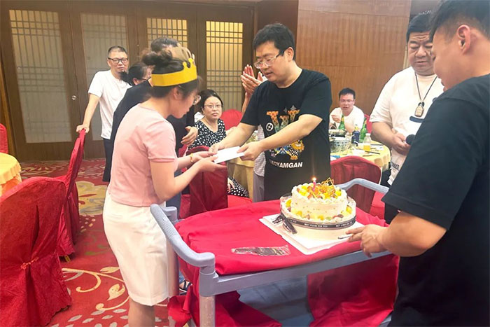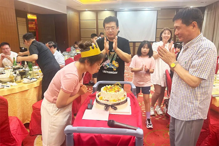 傍晚時分,大家經(jīng)玉屏索道下山后,放下一天登山的疲憊,開始幸福的晚餐。當日恰逢影像科趙睿醫(yī)生的生日,朱敏總經(jīng)理特地為她準備了生日蛋糕,為她過了一個滿是暖意和溫情的特殊生日,讓這夏日游玩的時光更是難忘。
