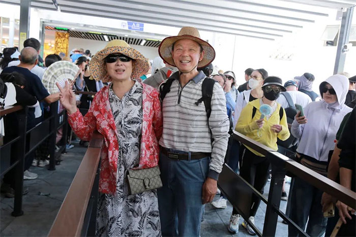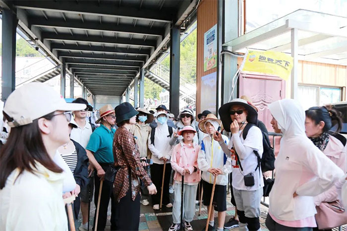 ▲ 經(jīng)索道上山后,開心合影