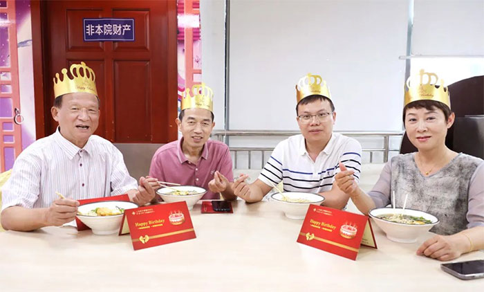 生日會上,院領導給大家送去精美的生日禮物和生日賀卡,大家吃著“長壽面”,分享著生日蛋糕,互致問候,許下美好心愿,讓生日會現(xiàn)場洋溢著歡樂的氛圍。