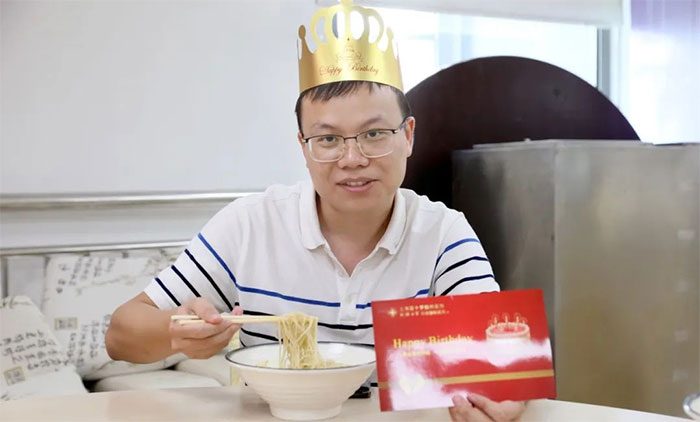 日月輪轉,轉眼間又老一歲。醫(yī)務科科長朱細海表示這是他步入藍十字的第八個生日,第一次參與集體生日會,非常開心。他還對工會和宣傳科工作人員的精心準備表示感謝,也借此祝福今日一同吃壽面品蛋糕的壽星們生日快樂。