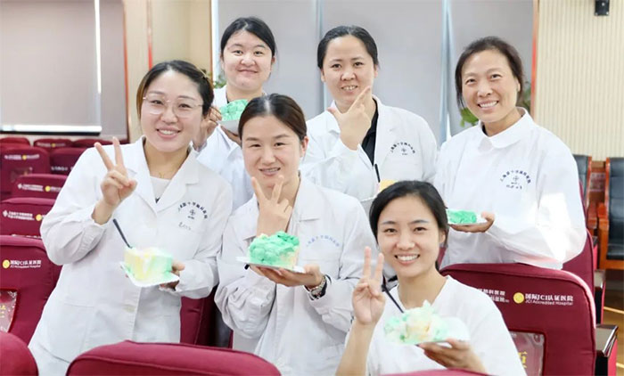 最后,朱敏總經(jīng)理、項(xiàng)耀鈞院長(zhǎng)為醫(yī)師們送上專門定制的“中國(guó)醫(yī)師節(jié)快樂(lè)”大蛋糕。蠟燭燃起,香甜彌漫開(kāi)來(lái),那是溫暖與感動(dòng)的滋味,不僅承載著真摯的節(jié)日祝福,還體現(xiàn)著藍(lán)十字大家庭的濃濃關(guān)愛(ài)。