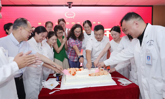 “節(jié)日快樂!你們辛苦了!”伴隨著一聲聲溫暖真摯的問候,院領(lǐng)導(dǎo)共同推上精心準(zhǔn)備的節(jié)日蛋糕。蛋糕之上,精心點(diǎn)綴著“醫(yī)師節(jié)快樂”的字樣,如同對(duì)白衣天使們無聲的禮贊。這份獨(dú)屬于節(jié)日的甜蜜,不僅是醫(yī)院對(duì)醫(yī)師們過往辛勤付出的慰藉,更是對(duì)“敬佑生命、救死扶傷、甘于奉獻(xiàn)、大愛無疆”職業(yè)精神最溫情的致敬與回響,是砥礪前行的精神動(dòng)力。