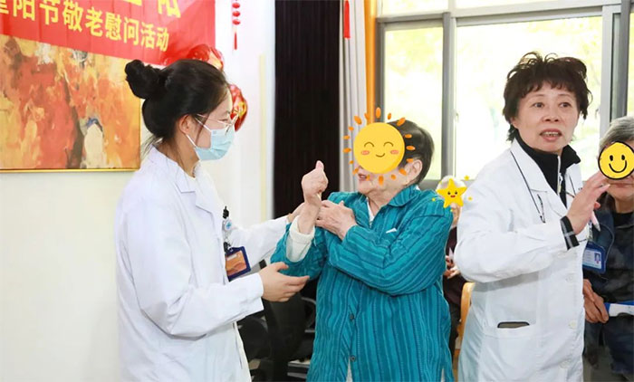 醫(yī)院總經理兼書記朱敏,院長項耀鈞,副院長潘耀良、周克祥,副總經理兼工會主席吳春芳,副總經理吳啟航等院領導深入病房,與科主任、護士長一起,親手送上美味的重陽糕,向老年患者致以節(jié)日的祝福。