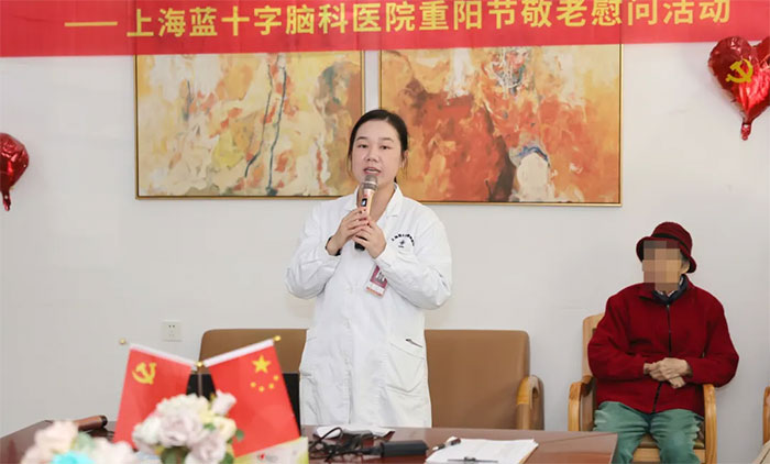 金秋十月,丹桂飄香。在中華民族傳統(tǒng)佳節(jié)“重陽節(jié)”與第20個“世界卒中日”來臨之際,為弘揚敬老愛老傳統(tǒng)美德,守護長者腦健康,10月28日下午,上海藍十字腦科醫(yī)院“藍小醫(yī)”志愿服務隊在8B腦血管病四科副主任陳泥的帶領下,帶著對長者的深切關懷,走進七寶敬老院,開展了“情暖重陽 ,健康相伴”主題健康慰問活動;顒佑舍t(yī)院門診部客服科主任羅佳主持。