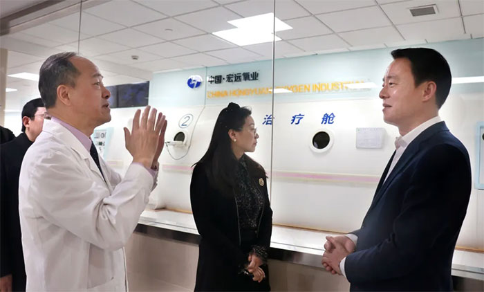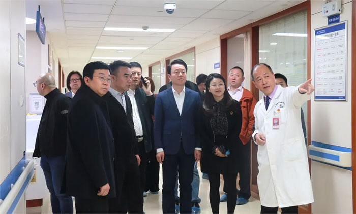 吳會長及商會會員企業(yè)家們在項(xiàng)耀鈞院長的陪同下,參觀了醫(yī)院手術(shù)室、神經(jīng)重癥監(jiān)腦復(fù)蘇病區(qū)、神經(jīng)外/內(nèi)科重癥監(jiān)護(hù)病區(qū)、腦血管病病區(qū)、康復(fù)科、高壓氧科、影像科、放療科等重點(diǎn)特色科室。參觀過程中,項(xiàng)院長向大家簡要介紹了醫(yī)院的整體規(guī)模、服務(wù)內(nèi)容、技術(shù)設(shè)備等,讓嘉賓及企業(yè)家門對醫(yī)院“服務(wù)行業(yè)、服務(wù)社會、服務(wù)患者”的服務(wù)理念有了初步的了解。