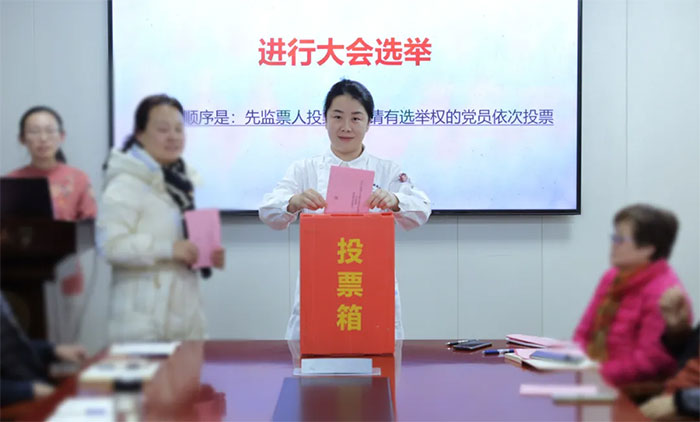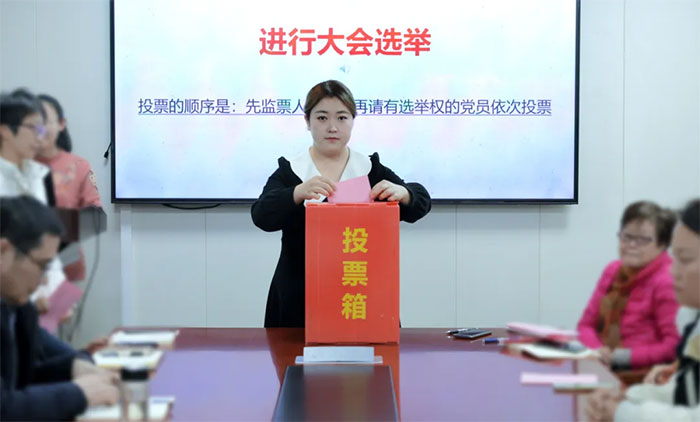 隨后,新一屆支部委員會召開第一次全體會議,選舉產(chǎn)生了新一屆委員會書記、副書記。朱敏同志任黨支部書記,趙宇蘭同志任黨支部副書記,并在會上明確了委員分工。