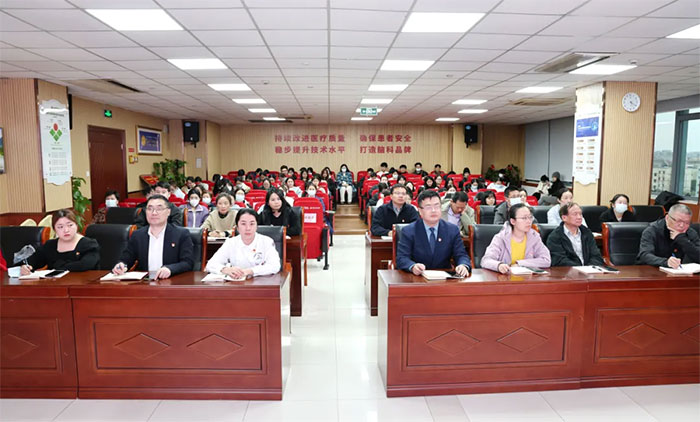 醫(yī)院書記朱敏、副院長潘耀良、周克祥,院中層干部及黨員、入黨積極分子等參與。會議由醫(yī)院黨支部副書記趙宇蘭主持。