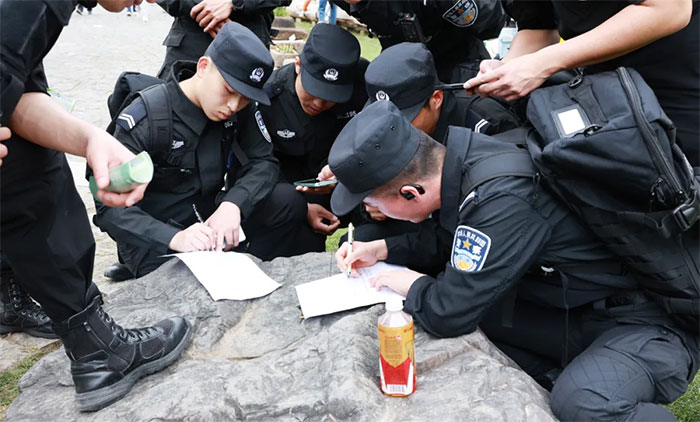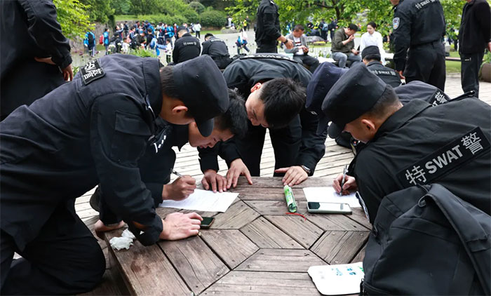 ▲ 拉練開始前,特警青年和藍(lán)十字醫(yī)療保障隊(duì)現(xiàn)場(chǎng)集結(jié)
